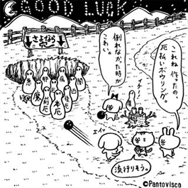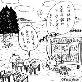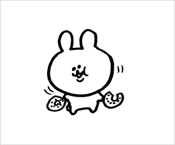 いつもドーナツを食べている、食いしん坊のうさぎ。知りたがりの性格で、気になったことは相棒のタケノコにすぐ質問をする。