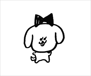 紅一点、大きな赤いリボンが特徴のメスの雑種犬。みんなの言動に対し、一歩引いた目線で反応する。女子力が高く、必要な事だけをポツリとつぶやく。
