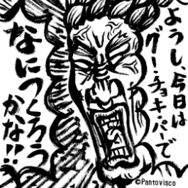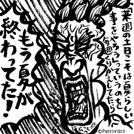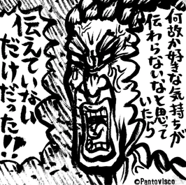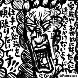 とんでもなく激しい表情の男性が、日常の些細な思いを大声で叫ぶシリーズ。