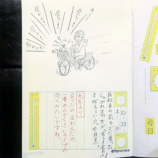 書籍の発売や個展も開催もされた、先生や校長との絵日記のやりとりがシュールなPantoviscoの代名詞シリーズ。